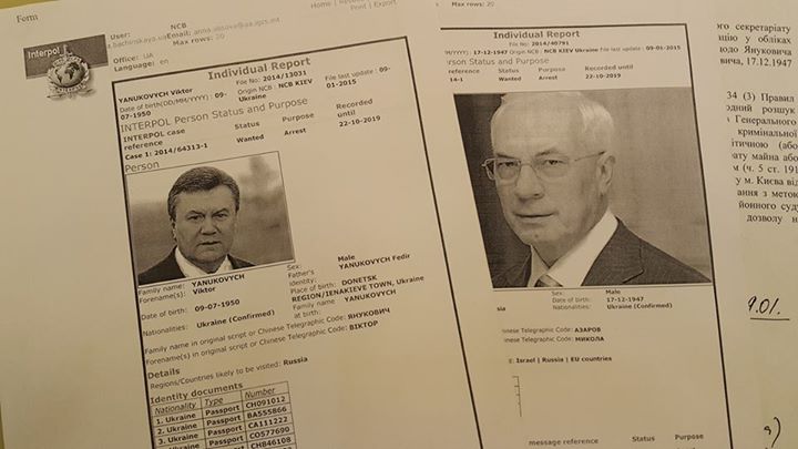 На сайте Интерпола действительно появились соответствующие данные по Януковичу и Азарову
