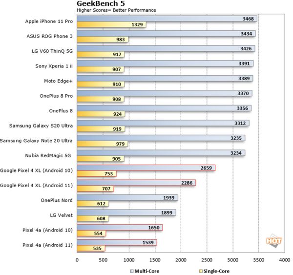 Исследование: Android 11 снижает быстродействие популярных смартфонов | |
