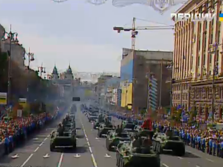 В Киеве прошел парад военной техники, приуроченный ко Дню Независимости Украины. Сотни единиц новейшей бронетехники, в том числе и военной техники украинского производства, проехали по главной улице Киева и Майдане Независимости.
