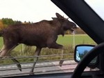Как лось устроил забег наперегонки с авто (видео) | |
