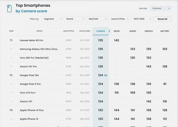 ![]() Фото: скриншот Новый бюджетный смартфон Google набрал 134 балла и занял лишь 75-е место в бенчмарке камерофонов DxOMark