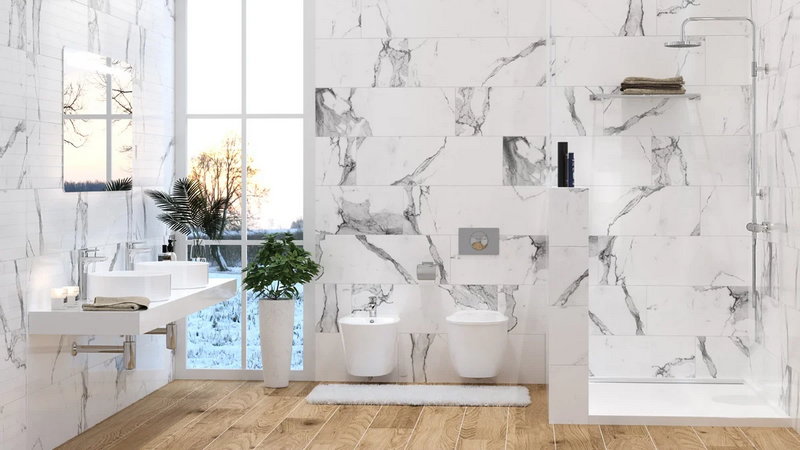 - Устойчивость к влаге и перепадам температур. Керамогранит является водонепроницаемым материалом, что делает его идеальным для использования в ванных комнатах, кухнях и других влажных помещениях.