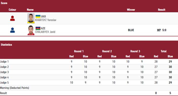 Украинец Ярослав Харциз, выступающий в весовой категории до 63 кг, завершил свои выступления на Олимпийских Играх-2020.В поединке 1/16 финала Харциз встречался с чемпионом мира 2013 года азербайджанцем Джавидом Челебиевым. Поединок прошел в высоком темпе, особенно со стороны Челебиева, который без разведки в высоком темпе отработал первые 30 секунд, которые Ярослав провел в защите, и далее был более активным. Харциз также неплохо выглядел, старался отвечать ударом на удар и где-то даже был точнее, но Челебиев выбросил больше ударов, да и пробивал более жестко. По итогам трех раундов все пятеро судей отдали победу азербайджанскому боксеру 5:0 (29:28, 30:27, 30:27, 30:27, 29:28). Это вторая потеря украинских боксеров в Токио - накануне в первом бою проиграл Николай Буценко. | |