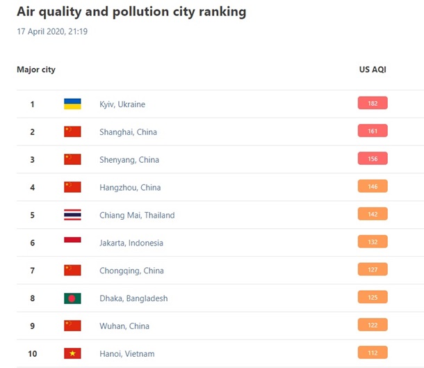 Киев вечером в пятницу, 17 апреля, снова стал городом с самым загрязненным воздухом в мире. Об этом свидетельствуют данные рейтинга компании IQAir.При допустимой норме индекса загрязнения в 50 у украинской столицы этот показатель составил 182. В пятерку рейтинга, кроме Киева, также вошли китайские Шанхай, Шэньян и Ханчжоу, а также тайский Чиангмай. ![]() | |