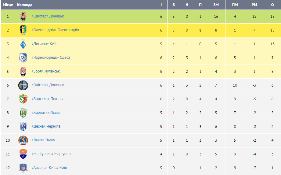 Динамо впервые потеряло очки в текущем сезоне украинской Премьер-лиги, упустив победу в гостевом матче шестого тура против Черноморца - 1:1.Поединок проходил между двумя играми раунда плей-офф Лиги чемпионов против Аякса, поэтому наставник киевской команды Александр Хацкевич выставил неосновной состав. Первый тайм не выявил победителя, поскольку соперники почти не создали моментов для взятия ворот, но после перерыва гости открыли счет. Это Назарий Русин после передачи Артема Шабанова точно попал в рамку одесситов. Хозяева поля предприняли успешные усилия для того, чтобы восстановить равновесие благодаря Глебу Грачеву и помешали Динамо выиграть в пятом матче кряду с результатом 1:0. По итогам шести туров киевский клуб набрал 13 очков и остался на третьей позиции, но опережающие его Шахтер (15 баллов) и Александрия (15) сыграли на один поединок больше, потому Динамо остается потенциальным лидером. Александрии удалось опередить столичную команду благодаря домашней победе над бронзовым призером минувшего сезона Ворсклой - 2:0. Черноморец — Динамо 1:1Голы: Грачев, 84 — Русин, 59Черноморец: Литовченко — Романюк, Рыжук, Грачев, Трубочкин — Савченко (Карноза, 74), Смирнов — Леонов (Мусолитин, 81), Бабенко, Чорний — Диденко (Коваль, 71) Динамо: Бойко — Морозюк, Бурда, Шабанов, Миколенко (Вербич, 46) — Че Че, Шепелев — Цыганков (Буэно, 64), Андриевский, Сидклей — Русин (Супряга, 83) Предупреждены: Бабенко, Литовченко, Смирнов Александрия — Ворскла 2:0 Голы: Банада, 15, 17 Таблица украинской Премьер-лиги![]() | |