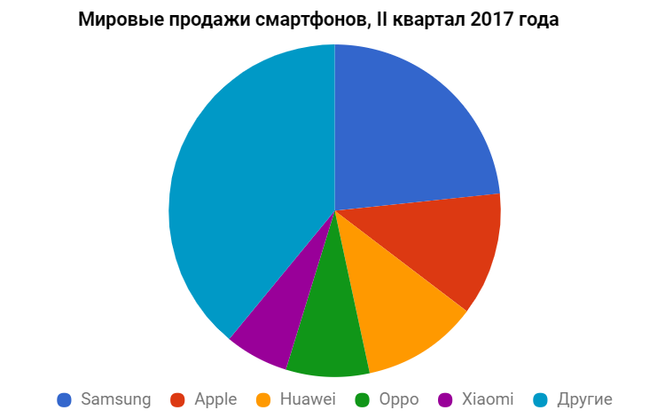 ![]() Фото: из открытых источников По итогам второго квартала 2017 года в мире продали 360 миллионов смартфонов. Большинство из них - китайских брендов.