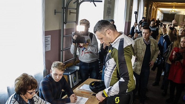 ![]() Фото: kiev.informator.ua В Киеве мэр Виталий Кличко проголосовал одним из первых.