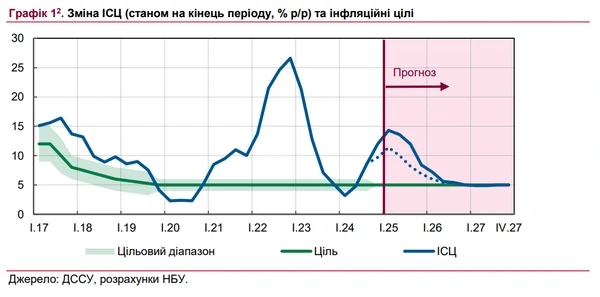 "Ожидается, что в конце 2025 года инфляция замедлится до 8,4%, а в 2026 году - до цели 5%. Этому, в частности, будут способствовать меры процентной и валютно-курсовой политики НБУ, а также высокие урожаи, улучшение ситуации в энергетике, снижение фискального дефицита и умеренное внешнее ценовое давление", - говорится в обзоре. | |