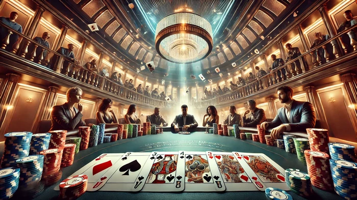 - Стрит: 5 последовательных (A-K-Q-J-10 гарантирует победу).