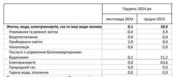 Средние цены на жилье, воду, электроэнергию, газ и другие виды топлива в Украине в декабре 2024 года по сравнению с декабрем прошлого года выросли на 18,9%. Причиной стало повышение цен на электроэнергию. Об этом сообщает РБК-Украина со ссылкой на Государственную службу статистики (Госстат). По данным статистического ведомства, выросли следующие тарифы: