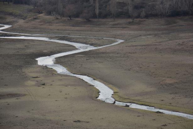 В Крыму Белогорское водохранилище настолько сильно обмелело, что верховья водоема полностью высохли. Там где летом были многометровые толщи воды, теперь обнажилось дно и четко видно русло реки Карасу, питающей водохранилище.