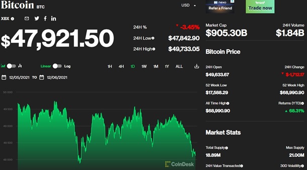 Курс биткоина упал ниже 48 тысяч долларов | |