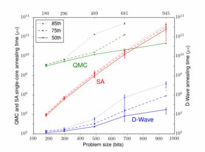 Представители Google недавно заявили, что квантовый компьютер D-Wave, приобретенный компанией в 2013 году, по-настоящему работает.Об этом сообщает MIT Technology Review и ряд других изданий. Квантовый суперкомпьютер D-Wave 2X выглядит как черная коробка величиной с небольшой садовый сарай — он меньше, чем обычные суперкомпьютеры, но внутри скрывается нечто необычное. Квантовые компьютеры работают по кардинально другому принципу, чем классические компьютеры, где вся информация закодирована последовательностью битов (ноль или единица). Если три обычных бита могут передавать любое из восьми значений (два в третьей степени), то три кубита (квантовых бита) могут представлять все восемь значений одновременно. Теоретически. Ведущие технологические компании, такие как Microsoft, IBM и Google, пытаются разработать компьютеры, основанные на идеях квантовой механики, поскольку в теории это откроет путь к намного более быстрым параллельным вычислениям. Квантовые компьютеры D-Wave рекламируются как «первые коммерчески доступные квантовые компьютеры», но до сих пор они вызывали споры: многие исследователи отказывались считать их квантовыми компьютерами и указывали на то, что они не дают прироста скорости вычислений по сравнению с классическими компьютерами. ![]() Сравнение времени вычисления D-Wave (синий график) и классических компьютеров (зеленый и красный графики) при использовании алгоритма квантового отжига Но в новой работе исследователям Google удалось доказать, что на некоторых задачах (например, при использовании алгоритма квантового отжига) D-Wave 2X выполняет расчеты на несколько порядков быстрее, чем классические компьютеры. «То, что D-Wave успевает за секунду, у обычного компьютера с одноядерным процессором заняло бы 10 000 лет», — заявил Нартмут Невен, глава лаборатории Google Quantum AI Lab в Лос-Анджелесе. | |