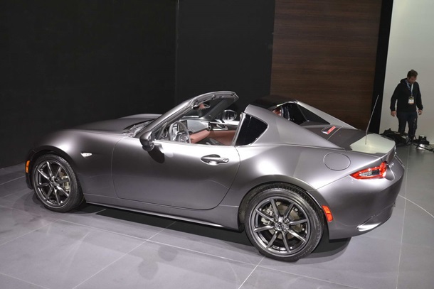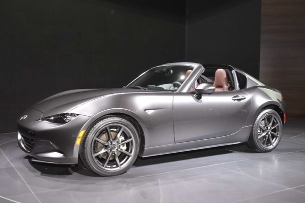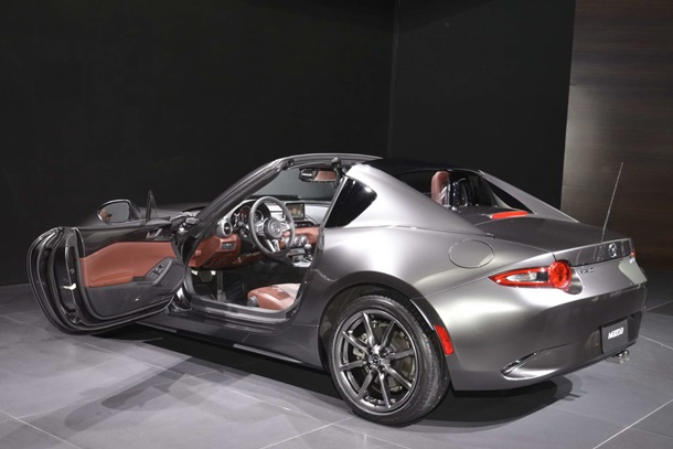 В рамках автосалона в Нью-Йорке японская компания Mazda представила новую версию знаменитого родстера MX-5, сообщает Carscoops.Особенностью спорткара MX-5 RF стал компактный жесткий верх, не отнимающий пространства и так довольно незначительного багажного отделения. Такое решение выгодно отличает внешний вид родстера с установленной крышей, приближая его по экстерьеру к купе. Для того чтобы установить или снять верх понадобится всего 12 секунд, а операция может быть совершена на скорости до 10 км/час. Новинка получит те же двигатели, что и версия автомобиля с мягким верхом. На выбор покупателям предложат моторы объемом в 1,5 или 2,0 литра. Также опцией станет автоматическая и ручная коробки передач. MX-5 RF станет одной из звезд американского автошоу, которое откроется для широкой публики 25 марта. ![]() ![]() ![]()