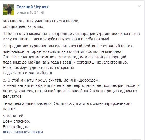 Миллионер из Forbes: после публикации деклараций, все мы — лохи | |