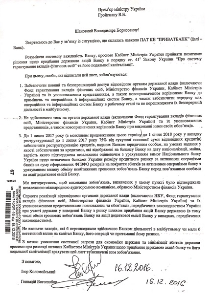 Министерство финансов опубликовал письмо экс-владельцев ПриватБанка (документ) | |