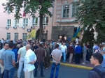 В Киеве около трех десятков митингующих пытаются штурмом взять здание главного офиса Государственной пограничной службы на улице Золотоворот