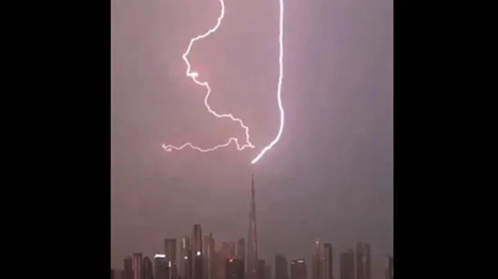 ![]() Фото: кадр из видео Сильная непогода накрыла ОАЭ. Очевидцы запечатлели попадание молнии в небоскреб Бурдж Халифа, который имеет 163 этажа.