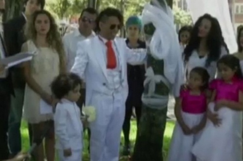 Перуанский общественный деятель и актер Ричард Торрес женился на обычном дереве. "Пара" была повенчана в Национальном парке Боготы, сообщает ТСН.ua. со ссылкой на ресурс The Mirror.
