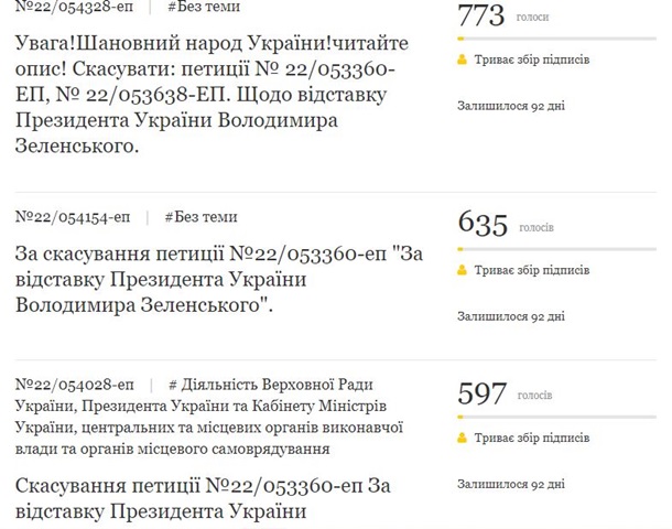 ![]() Фото: president.gov.ua Граждане массово регистрируют петиции об отмене результатов петиции за отставку Зеленского, набравшей голоса менее чем за сутки.