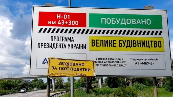 На щитах «будівництва Зеленського» вимагають вказувати, що воно ведеться за гроші українців | |