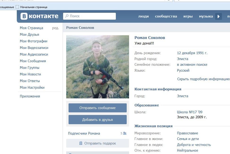 ![]() 24-летний Роман Соколов написал в социальной сети о потерях на Донбассе