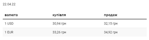 В пятницу, 22 апреля, средний курс покупки наличного доллара в украинских банках по сравнению с четвергом вырос на 14,7 коп. и составляет 30,94 грн. Курс продажи увеличился на 2,1 коп. – до 32,15 грн. Минимальный курс покупки доллара в банках составил 29,25 грн, максимальный – 32,04 грн. Для продажи минимальный курс – 31,9 грн, максимальный – 32,18 грн. Средний курс покупки евро вырос на 27,4 коп. и составляет 33,26 грн. Средний курс продажи увеличился на 14,3 коп. и достиг 34,92 грн. Минимальный курс покупки для евро составил 31,83 грн, максимальный – 34,7 грн. Для продажи минимальный курс – 34,61 грн, максимальный – 35 грн. | |