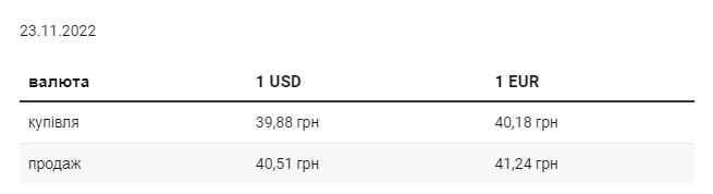 В среду, 23 ноября, средний курс покупки наличного доллара в украинских банках, по сравнению со вторником, вырос на 6 коп. и составляет 39,88 грн. Курс продаж увеличился на 4 коп. и достиг 40,51 грн. Минимальный курс покупки доллара в банках составляет 39,1 грн, максимальный – 40,2 грн. Для продажи минимальный курс – 40 грн, максимальный – 40,9 грн. Средний курс покупки евро вырос на 15 коп. и составил 40,18 грн. Средний курс продаж поднялся на 16 коп. и достиг 41,24 грн. Минимальный курс покупки для евро составляет 39,1 грн, максимальный – 40,66 грн. Для продажи минимальный курс также 40,6 грн, максимальный – 42,4 грн. | |