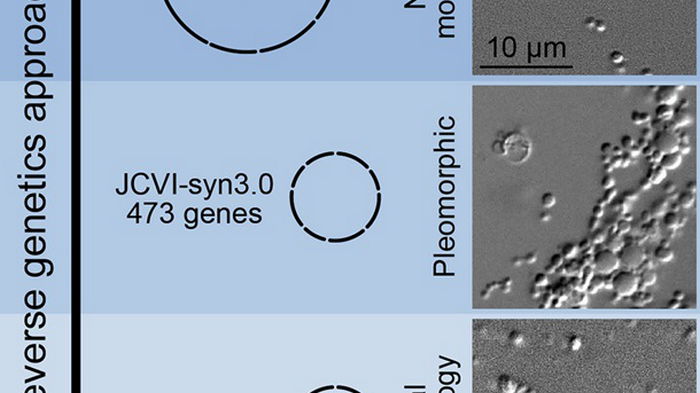 ![]() Фото: cell.com Биологи взяли микоплазму, удалив ее ДНК и поместили в ее клетку код, состоящий из 473 генов. Предварительно код написали на компьютере