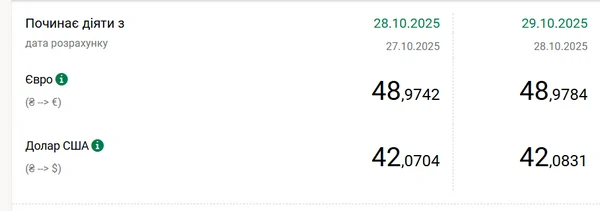 Национальный банк Украины (НБУ) повысил курс доллара к гривне – на 1 копейку. Об этом сообщает РБК-Украина со ссылкой на данные на сайте регулятора. Официальный курс доллара на 29 октября 2025 года установлен на таком уровне: 42,0831 гривны за 1 доллар (+0,01 грн). Официальный курс евро составляет 48,1094 гривны за 1 евро. Стоимость евро практически не изменилась по сравнению с предыдущим днем.