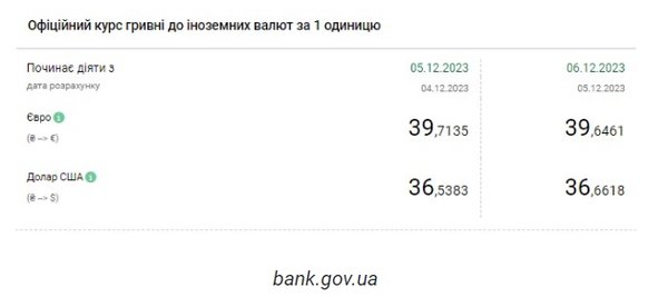 Национальный банк Украины (НБУ) поднял курс доллара выше уровня фиксированного, который держался больше года (36,57). Доллар на межбанке идет вверх после отмены ограничений на наличном рынке. Об этом сообщает РБК-Украина со ссылкой на данные на сайте регулятора. Официальный курс на 6 декабря 2023 года установлен на таком уровне: 36,6618 гривен за 1 доллар (+0,1235 грн). Курс евро составит 39,6461 гривен за 1 евро (-0,0674 грн). На межбанке сегодня курс вырос на 13 копеек до 36,68-36,70 грн/доллар (покупка-продажа). На наличном рынке курс не изменился - 37,40 гривен за доллар. | |
