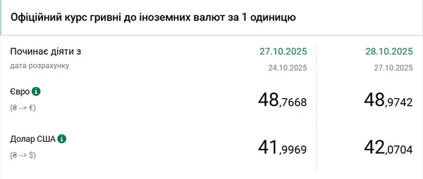 Национальный банк Украины (НБУ) повысил курс доллара к гривне – на 7 копеек. Об этом сообщает РБК-Украина со ссылкой на данные на сайте регулятора. Официальный курс доллара на 28 октября 2025 года установлен на таком уровне: 42,0704 гривен за 1 доллар (+0,07 грн). Официальный курс евро составляет 48,9742 гривен за 1 евро (+0,21 грн).