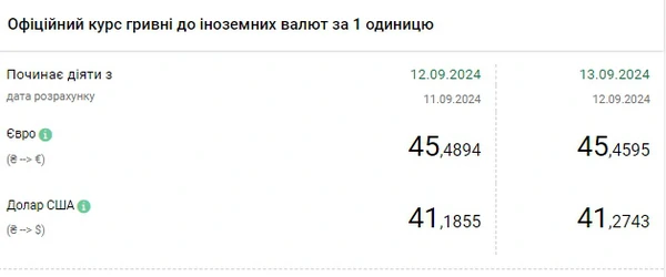 Национальный банк Украины (НБУ) повысил курс доллара к гривне. Доллар дорожает четвертый день подряд. Об этом сообщает РБК-Украина со ссылкой на данные на сайте регулятора. Официальный курс на 13 сентября 2024 года установлен на таком уровне: 41,2743 гривен за 1 доллар (+0,0888 грн). Курс евро составит 45,4595 гривен за 1 евро (-0,0299 грн).