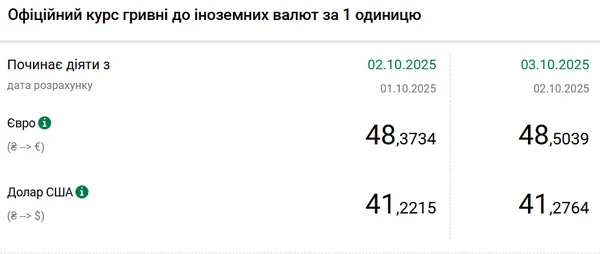 Национальный банк Украины (НБУ) повысил курс доллара к гривне. Доллар дорожает второй день подряд. Об этом сообщает РБК-Украина со ссылкой на данные на сайте регулятора. Официальный курс на 3 октября 2025 года установлен на таком уровне: 41,2764 гривен за 1 доллар (+0,0549 грн). Официальный курс евро составит 48,5039 гривен за 1 евро (+0,1305 грн).