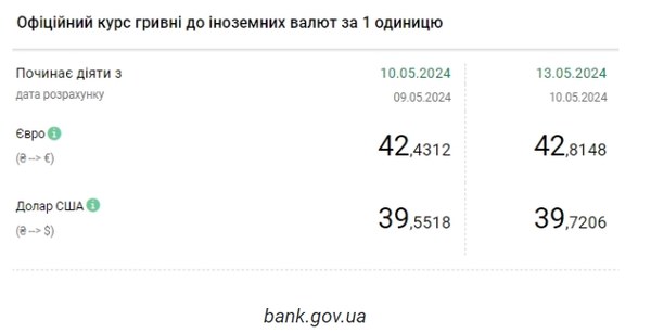 Национальный банк Украины (НБУ) повысил курс доллара к гривне. Доллар дорожает третий день подряд. Об этом сообщает РБК-Украина со ссылкой на данные на сайте регулятора. Официальный курс на 13 мая 2024 года установлен на таком уровне: 39,7206 гривен за 1 доллар (+0,1688 грн). Курс евро составит 42,8148 гривен за 1 евро (+0,3836 грн). Это исторический максимум. Выше курс был только 27 марта - 42,6911 грн/евро. На межбанке курс упал на 2 копейки до 39,60-39,62 грн/доллар (покупка-продажа) по сравнению с закрытием в предыдущий день. На наличном рынке курс вырос на 10 копеек до 39,95 грн/доллар. | |