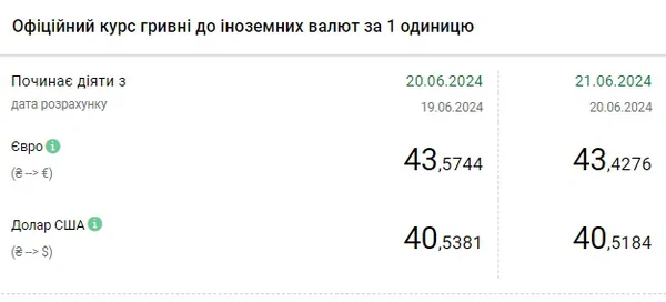 Национальный банк Украины (НБУ) снизил курс доллара к гривне. Доллар дешевеет пятый день подряд. Об этом сообщает РБК-Украина со ссылкой на данные на сайте регулятора. Официальный курс на 21 июня 2024 года установлен на таком уровне: 40,5184 гривен за 1 доллар (-0,0197 грн). Курс евро составит 43,4276 гривен за 1 евро (-0,1468 грн).