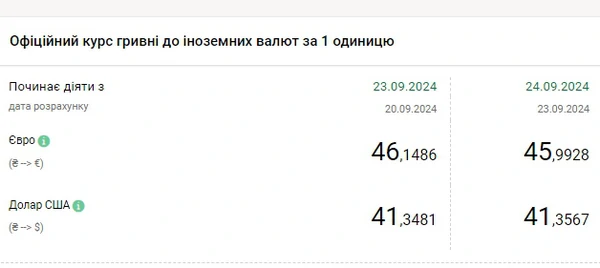 Национальный банк Украины (НБУ) повысил курс доллара к гривне. Доллар подорожал после двух дней снижения. Об этом сообщает РБК-Украина со ссылкой на данные на сайте регулятора. Официальный курс на 24 сентября 2024 года установлен на таком уровне: 41,3567 гривен за 1 доллар (+0,0086 грн). Курс евро составит 45,9928 гривен за 1 евро (-0,1558 грн).