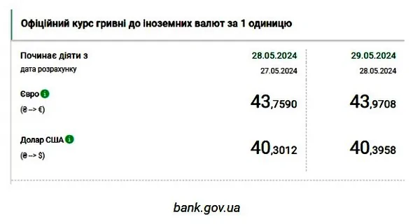 Национальный банк Украины (НБУ) снова повысил курс доллара к гривне до исторического максимума. Это шестой рекорд подряд. Об этом сообщает РБК-Украина со ссылкой на данные на сайте регулятора. Официальный курс на 29 мая 2024 года установлен на таком уровне: 40,3958 гривен за 1 доллар (+0,0946 грн). Предыдущий максимум был зафиксирован день назад, 28 мая - 40,3012. Доллар дорожает уже более недели и вырос за это время на 97 копеек (с 39,4272 грн/доллар на 20 мая). Курс евро составит 43,9708 гривен за 1 евро (+0,2118 грн). Это также максимум. Предыдущий максимум был установлен 28 мая - 43,759.