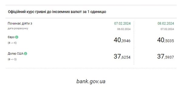 Национальный банк Украины (НБУ) снизил курс доллара. Доллар подешевел после роста накануне. Об этом сообщает РБК-Украина со ссылкой на данные на сайте регулятора. Официальный курс на 8 февраля 2024 года установлен на таком уровне: 37,5937 гривен за 1 доллар (-0,0317 грн). Курс евро составит 40,5035 гривен за 1 евро (+0,1089 грн). На межбанке сегодня курс упал на 4 копейки до 37,57-37,59 грн/доллар (покупка-продажа) по сравнению с закрытием в предыдущий день. На наличном рынке курс не изменился - 38,05 грн/доллар. | |