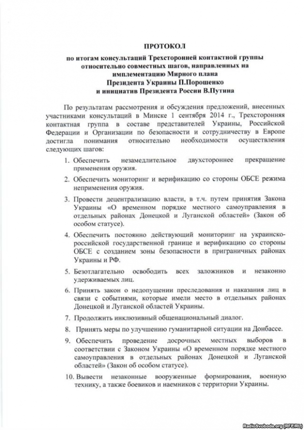 ОБСЕ опубликовала подписанный минский протокол (документ) | |