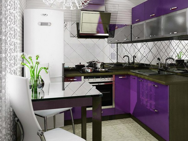 Первостепенной задачей в такой кухне является покупка мебели, которая войдет по габаритам в это помещение. Выбор должен вестись от того, что в такую кухню, может войти только все самое необходимое, а ничего хотелось бы и о чем мечталось, про барную стойку и камин, точно придется забыть. Если, есть финансовая возможность, то, конечно, лучше всего, прибегнуть к помощи специалистов, и заказать мебель по строго индивидуальному проекту. Если же нет, выбираем сами, отдаем предпочтение многофункциональной мебели. Прежде чем покупать гарнитур, разместите на кухне плиту, стол, холодильник. Без этих базовых вещей кухни быть не может, а вот все что останется это и будет местом под мебель.