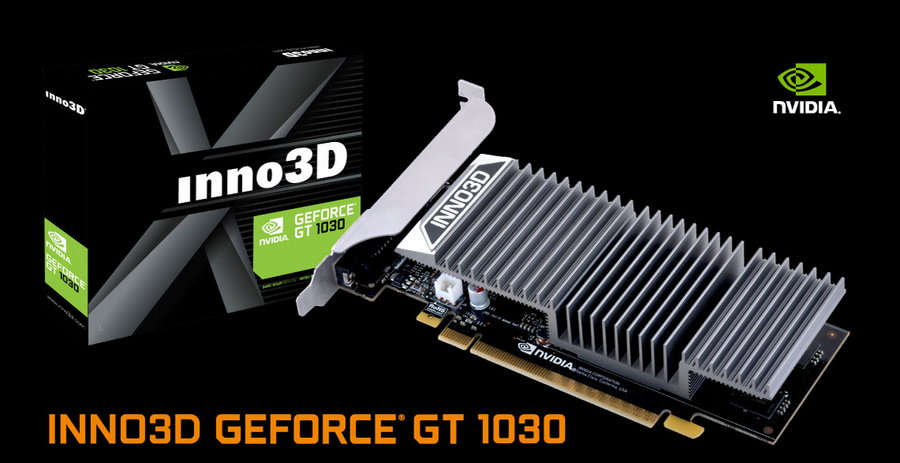 У видеокарты Nvidia GT1030 (https://compx.com.ua/ru/videokarti-nvidia-geforce-gt-1030/) минимальный игровой потенциал — её можно сравнить со встроенной графикой в новых процессорах. Зато она идеально подходит для сборки мультимедийного плеера. Рассказываем про самую интересную её версию — бесшумную плату, представленную компанией Inno3D. Краткие технические характеристикиПараметры видеокарты весьма скромны даже в сравнении с бюджетными моделями 1600-й линейки. Её процессор состоит всего из 384 потоковых ядер. Зато они работают на сравнительно высокой тактовой частоте — от 1227 до 1468 МГц. Микросхема построена по 14-нанометровому процессу — это позапрошлое поколение. Естественно, трассировки лучей и интеллектуального масштабирования текстур здесь не предусмотрено. Подсистема памяти представлена двумя чипами Samsung GDDR5, работающими на частоте 6 ГГц. Буфер объёмом 2 ГБ подключен к 64-битной шине. Благодаря этому удаётся достичь суммарной пропускной способности в 48,06 ГБ/с.