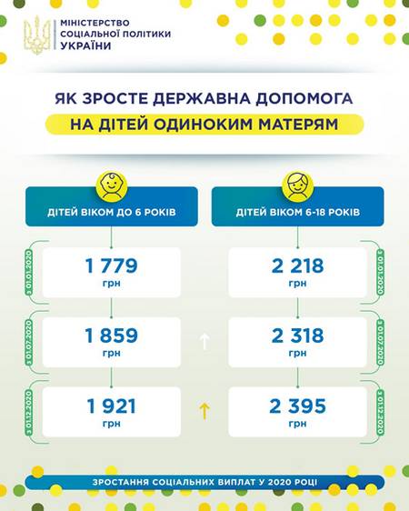 В течение 2020 года государственная помощь одиноким матерям на детей до 6 лет увеличится на 142 гривны и достигнет 1921 грн. Об этом в четверг, 16 января, сообщила пресс-служба Министерства социальной политики.Отмечается, что государственная помощь на детей одиноким матерям на ребенка до 6 лет с 1 января 2020 года составит 1779 грн, с 1 июля 2020 года - 1 859 грн, а с 1 декабря 2020 года - 1921 грн. Кроме того, государственная помощь одиноким матерям на ребенка в возрасте 6-18 лет с 1 января 2020 года составит 2218 грн, с 1 июля 2020 года - 2318 грн, а с 1 декабря 2020 года - 2395 грн. ![]() | |