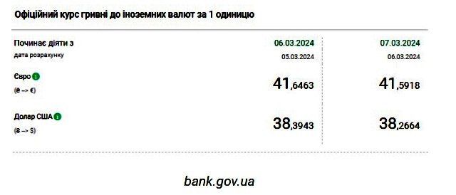 Национальный банк Украины (НБУ) снизил курс доллара. Доллар подешевел после роста в течение трех дней подряд. Об этом сообщает РБК-Украина со ссылкой на данные на сайте регулятора. Официальный курс на 7 марта 2024 года установлен на таком уровне: 38,2664 гривен за 1 доллар (-0,1279 грн). Курс евро составит 41,5918 гривен за 1 евро (-0,0545 грн). На межбанке сегодня курс упал на 19 копеек до 38,22-38,23 грн/доллар (покупка-продажа) по сравнению с закрытием в предыдущий день. На наличном рынке курс не изменился - 38,60 грн/доллар. | |