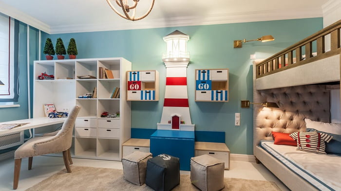 Разделение зонВ детской должны быть правильно разделены зоны отдыха, обучения и, конечно, игр. Малыш с детства должен приучаться к порядку. Благодаря такому разделению, он будет понимать, что кровать для отдыха, а играть нужно в отведенном для этого месте.Мебель для детейВыбор подходящей мебели — процесс нелегкий. Подберите не слишком громоздкую, но в то же время прочную конструкцию. Главное, чтобы мебель была безопасна и функциональна, например, это может быть детская кровать чердак с горкой.Цветовое решениеЦвета подбираются строго с учетом интересов и индивидуальности ребенка.Если малыш активен, стоит уделить особенное внимание безопасности комнаты. Обустройте ее мебелью с закругленными краями. Установите розетки со специальными заглушками. Игровую зону можно сделать в ярких тонах, а зону отдыха оставить более спокойной. Для творческого ребенка используйте спокойные тона, с добавлением ярких элементов. Это могут быть различные фигуры либо картинки. Окно лучше не закрывать плотными шторами. Они должны пропускать достаточно света и воздуха в комнату. На пол следует постелить ковер, так малышу будет теплее и комфортнее. Идеи для дизайна детскойДизайн для маленькой модницы можно подобрать в стиле гламур. Мебель подберите светлых тонов, а лучше белого цвета. Дополните различными современными боксами для хранения вещей.Ковры и пледы выберите с длинным и мягким ворсом. Для мальчика можно выбрать морскую тематику. Цвета для нее подойдут белый, бежевый и оттенки синего, с добавлением элементов корабля и моря. Маленькая детская комнатаДовольно часто родители сталкиваются с нехваткой места для размещения всех необходимых составляющих.Приведем правила, благодаря которым можно обыграть недостаток места. Если детская предназначена будет для двух детей, то вот здесь посмотрите детские двухъярусные кровати от производителя. Важно, чтобы она была снабжена бортиками безопасности и ящиками для вещей. Это очень сэкономит место. От громадного шкафа придется отказаться, а лучше отдать предпочтение комоду. Современные модели очень вместительны и компактны. Сразу возникает вопрос, куда вешать вещи, чтобы они не помялись. Для этого сейчас есть напольные вешалки с плечиками. Они не занимают много места. Выигрышным вариантом будет раскладывающийся стол. При необходимости в любой момент его можно разложить и сложить. Он не займет много и без того недостающего пространства. Используйте многофункциональную мебель. На данный момент есть даже кровати, которые складываются и превращаются в удобное кресло. Натуральные материалыОчень важно именно для детской, чтобы в ней были использованы только натуральные материалы, ведь здоровье наших детей — самое ценное богатство. | |