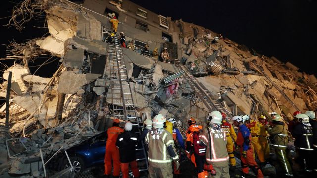 Количество жертв землетрясения выросло до 20 погибших, передает BBC. Среди них один ребенок.По данным властей, 132 человека до сих пор находятся под завалами 17-этажного жилищного комплекса в городе Тайнань на юге острова. В доме проживали 256 человек. Приборы, которые реагируют на тепло человеческого тела, указывают на то, что под руинами находятся живые люди. Президент Тайваня Ма Инцзю пообещал сделать все возможное для их спасения. Напомним, на китайском острове Тайвань 6 февраля произошли три землетрясения, магнитуда самого разрушительного составила 6,4 балла по шкале Рихтера. Толчки произошли в 03:57 по местному времени (21:57 по киевскому, 5 февраля). В Тайнане в результате землетрясения рухнуло 17-этажное здание.