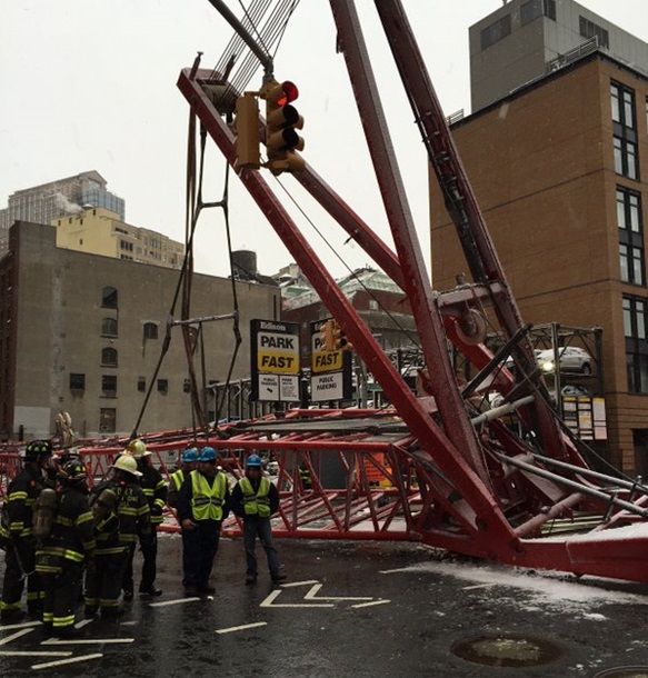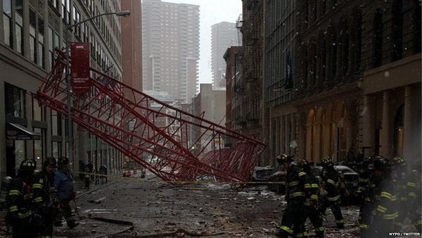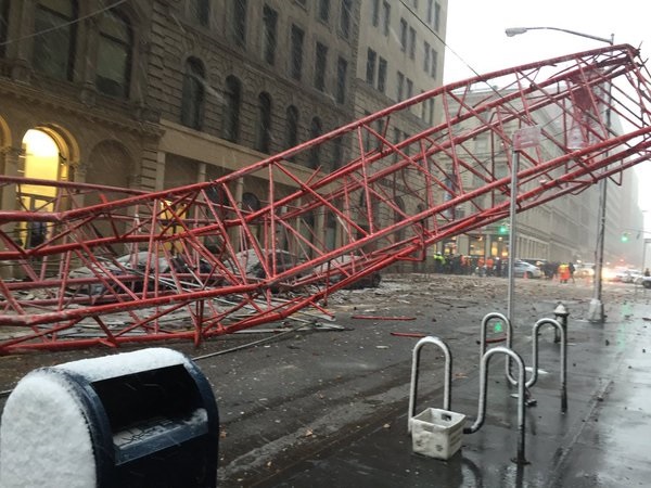 Massive crane collapses in NYC: 1 dead, 2 hurt Металлические обломки и строительный материал разлетелись по близлежащим улицам. Часть Нижнего Манхэттена перекрыта. Также не останавливаются поезда метро двух станций, находящихся в зоне происшествия. На месте происшествия находятся более 130 пожарных и сотрудники полиции. Причины произошедшего выясняются. ![]() ![]() ![]()