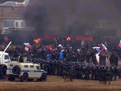 В сети появилось видео тайных учений Нацгвардии России, которые имитируют разгон "московского майдана".Запись опубликовало общественное движение Михаила Ходорковского "Открытая Россия". Согласно сценарию учений, мирный митинг перерос в массовые беспорядки. Начались столкновения с полицией. "Корреспондент "Открытой России" стал нечаянным свидетелем учебных боев недалеко от Люберец. Сотни омоновцев, бойцов внутренних войск и сотрудников полиции имитировали разгон "московского майдана". Как вновь созданная Нацгвардия будет бороться с массовыми протестами?" - говорится в сообщении. В разгоне протестующих участвовали полицейские, экипированные щитами и дубинками. В учениях были задействованы водометы, машины для рассекания толпы, пожарный вертолет и другая техника. | |