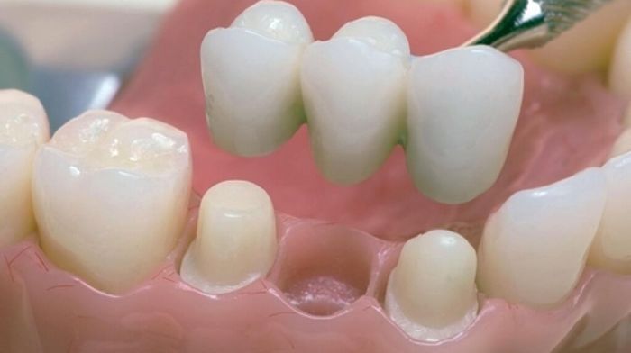 - Мостовидные протезы. Пользоваться подобным типом протезирования стоит в случае, если единовременно удалено несколько зубов. Для подготовки подобных конструкций применяют особо прочные материалы. Их в обязательном порядке фиксируют. Для этого используются особо прочные и надежные опоры.