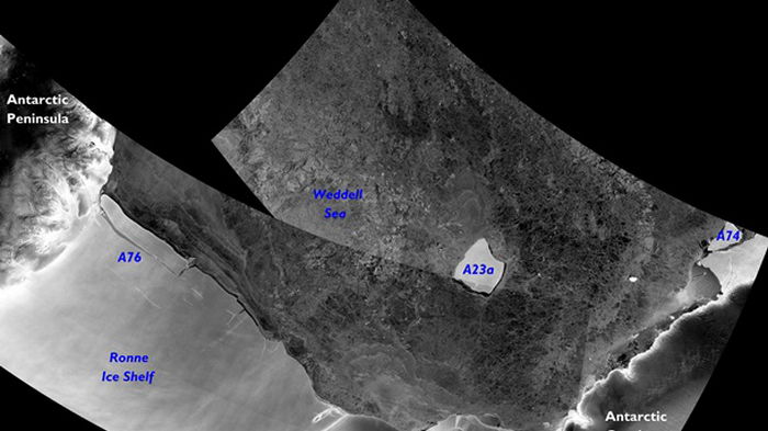 ![]() Фото: esa.int Гигантская глыба льда отделилась от западной части шельфового ледника Ронне и сейчас находится в море Уэдделла.